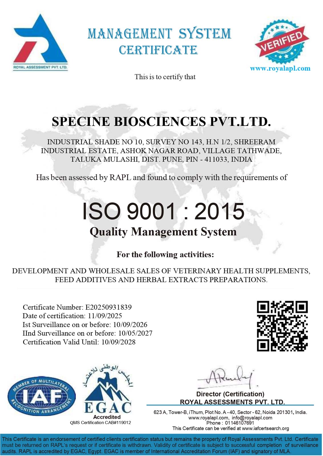 Specine Biosciences is an innovation-led animal health company focused on the discovery, development and marketing of nutritional and therapeutic solutions for production and companion animals worldwide. We combine cutting-edge science with a planet-first philosophy to create products that work in the field, meet regulatory standards and win long-term trust.